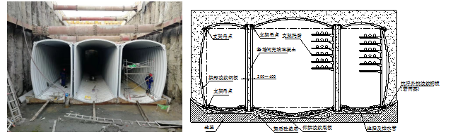 (1)、分片拼裝式波紋鋼結構,每片波紋鋼板面積只有2~3平方米,單節長度沿縱向長度只有1~1.5米,并且要求錯縫拼裝,接縫多。