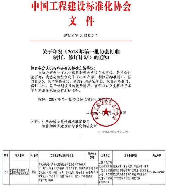 中國工程建設標準化協會組織專家對本體系各項關鍵技術進行了詳細地討論及評估,于 2018  5 月份批準利用該體系編制 CECS 標準: