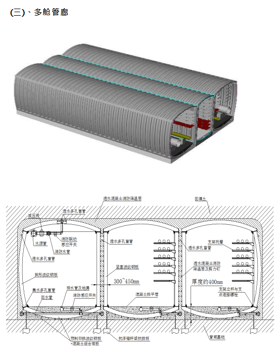 ② 拱形或圓形截面的管廊,內部管線的排布設計困難,管線容納量小;