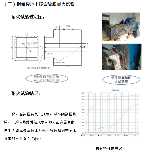 ④更為重要的是,耐火涂料只能阻止火災時鋼結構的溫度不高于 550℃,但對于鋼結構地下管廊來說情況特殊,在火災發生半小時左右,耐火涂料覆蓋的鋼結構體溫度就超過 150℃,廊體外部土壤中的水份形成高溫高壓蒸汽,其產生的次生災害有可能嚴重于火災本身。